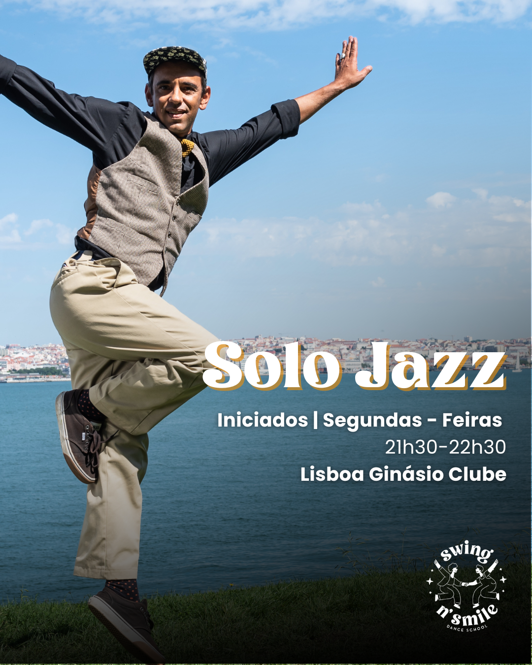 💃 Solo Jazz (a solo) – não precisas de parceiro! Aqui vais explorar os movimentos do Jazz Vernacular, cheio de ritmo, energia e improvisação, sempre ao som de música Swing.